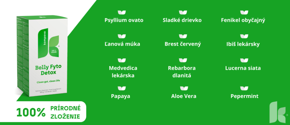V roku 1998 WHO odporučila vlákninu nerozdeľovať, nakoľko je každá potravina zmesou rozpustnej a nerozpustnej vlákniny. Jedinečná kombinácia 10 rastlinných extraktov v Belly Fyto Detox prispieva k optimálnej črevnej mikroflóre, ukľudňuje sliznicu tráviaceho traktu a čriev, prispieva k správnemu tráveniu podporou vylučovania tráviacich štiav, navodzuje správnu peristaltiku (pohyb) čriev a napomáha správnemu a ľahkému vyprázdňovaniu čím eliminuje zápchu.