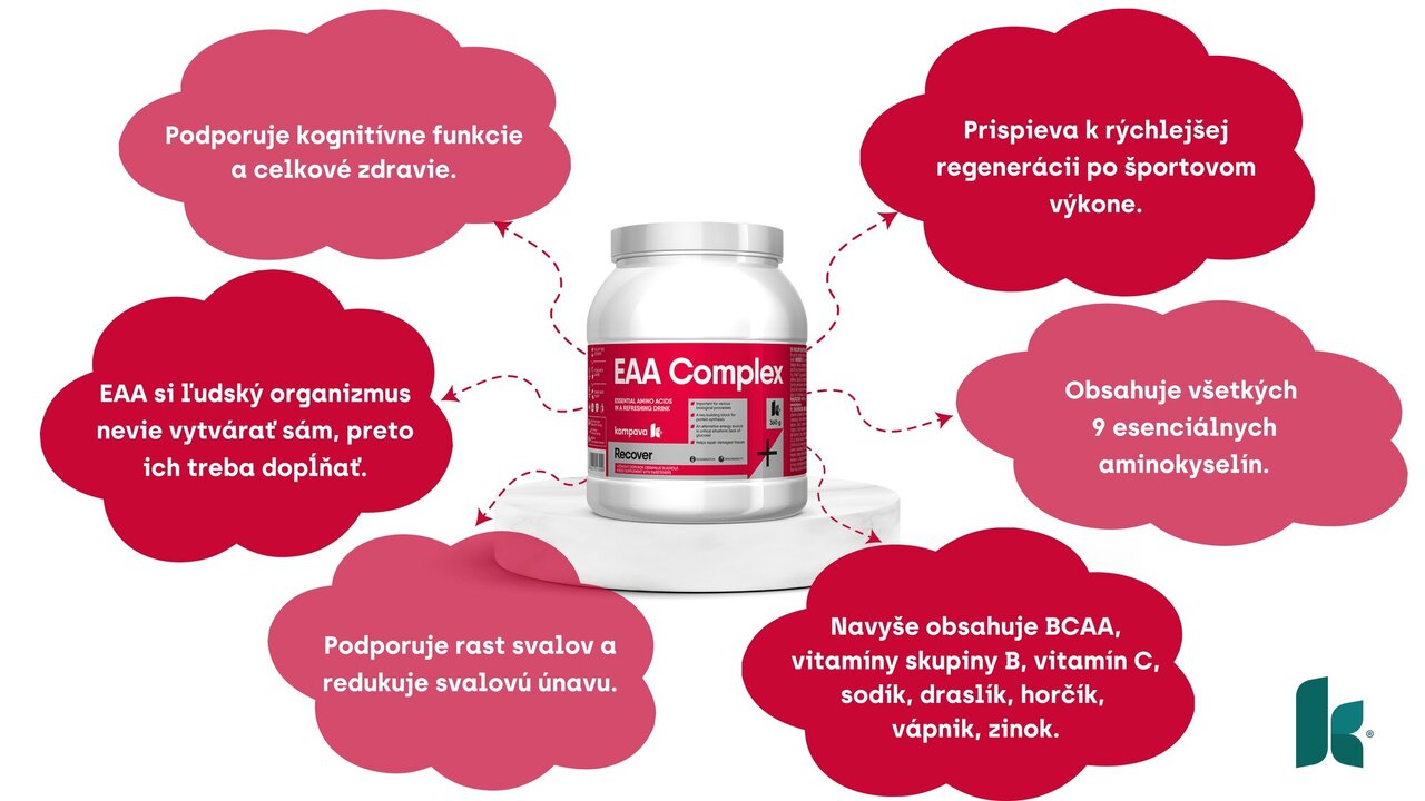 EAA podporujú regeneráciu po fyzickej záťaži tým, že poskytujú základné zložky potrebné na opravu a rast svalových tkanív, znižujú svalovú únavu a urýchľujú obnovu energetických zásob.