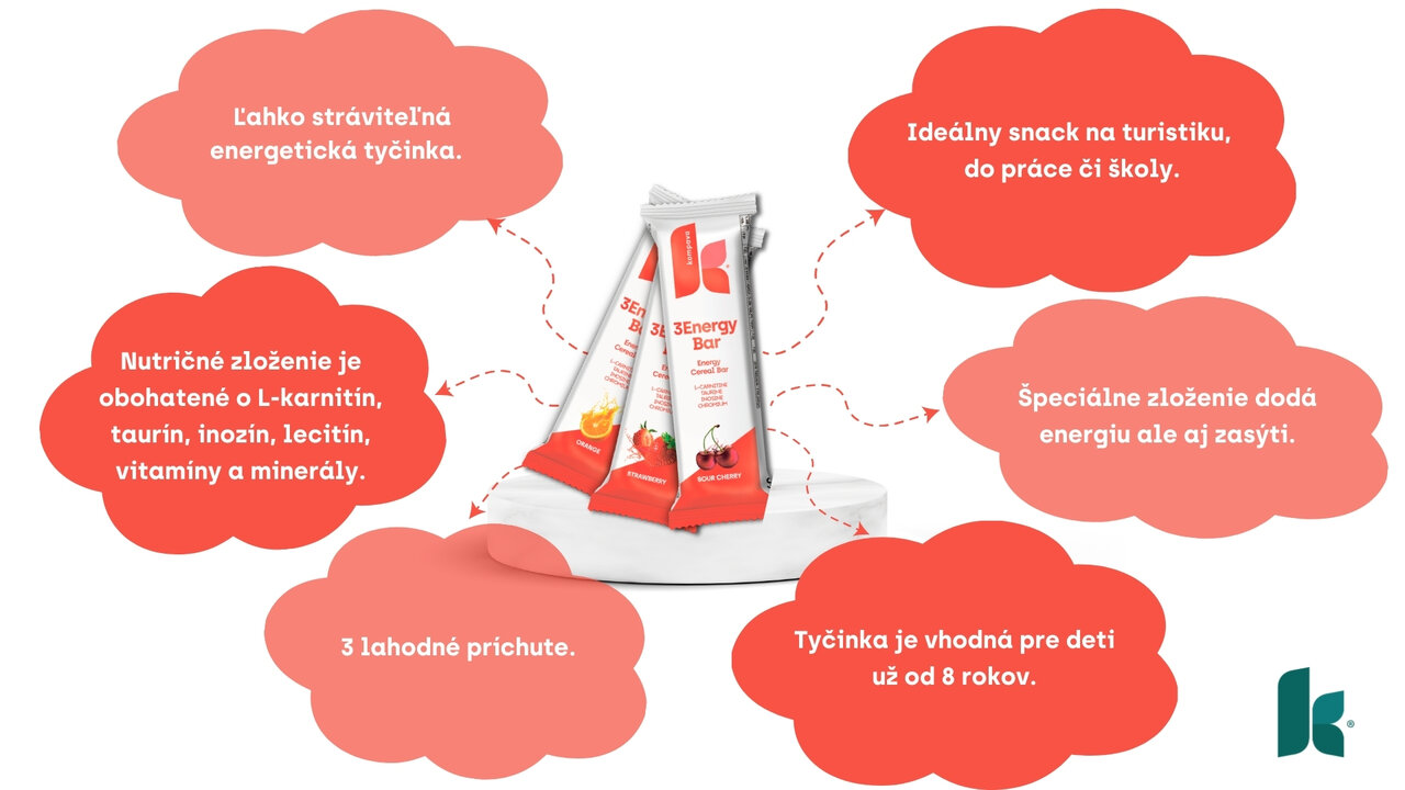 Energetická tyčinka 3Energy Bar je dokonalým spojením chutnej maškrty a efektívneho zdroja energie. Energetická cereálna tyčinka je dostupná v 3 príchutiach s lahodným želé a delikátnou polevou. Na výber máte tyčinky v príchuti: