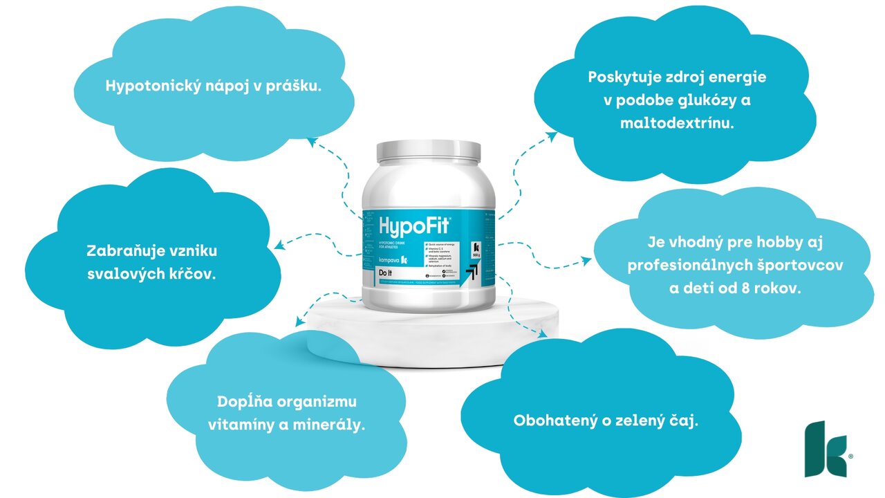 Hypotonický nápoj HypoFit® je nevyhnutnou súčasťou vytrvalostného výkonu každého profesionálneho aj hobby športovca, či sa jedná o beh, cyklistiku, futbal, basketbal, plávanie alebo aeróbne cvičenia. Poskytuje rýchlo dostupný zdroj energie v podobe sacharidu glukózy a pozvoľný zdroj energie v podobe maltodextrínu.