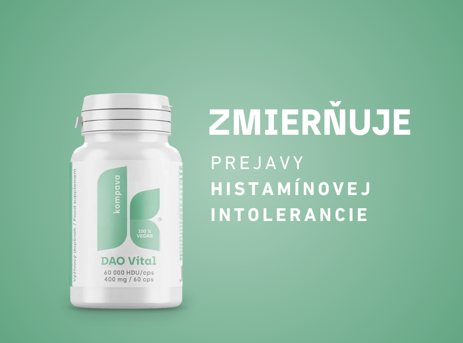 - pri histamínovej intolerancii zvážte podporu v podobe DAO Vitalu.